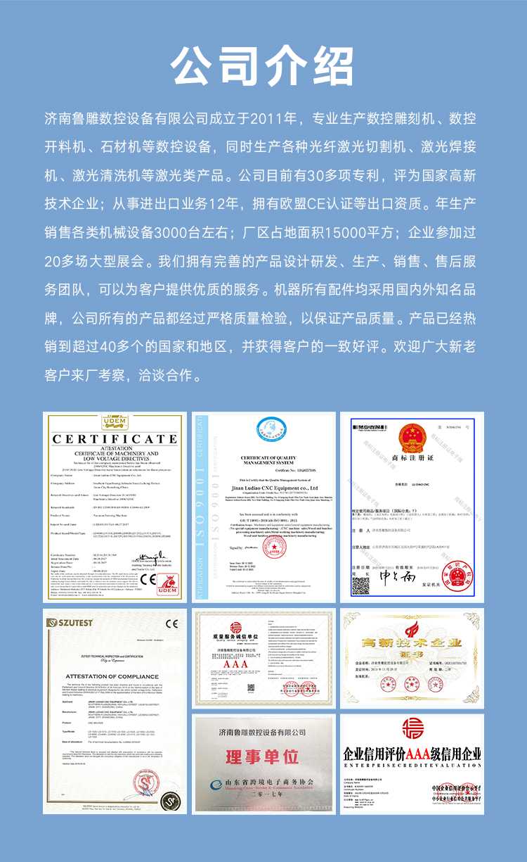 濟南魯雕數控設備有限公司 專業生產各種數控雕刻機,數控開料機,激光金屬切割機木工雕刻機